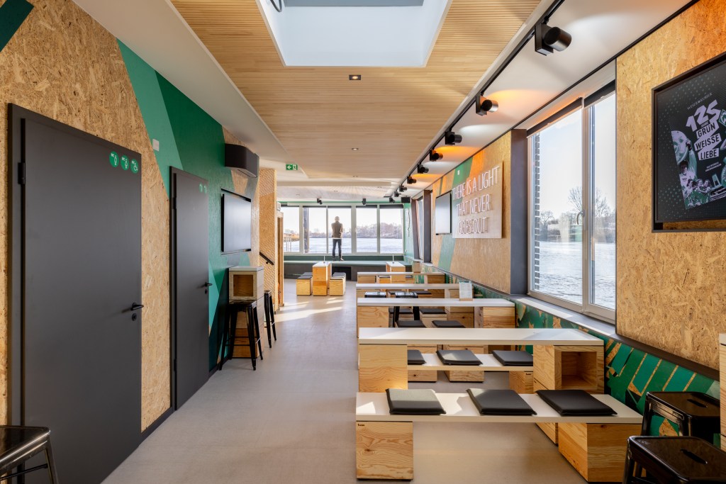 Projekt: Grüne BudeKunde: SV Werder BremenDesign Agentur: GfG / Gruppe für GestaltungEvent Agentur: JOKE Event AGJubiläumskampagne: Rocket & Wink, HamburgRaumgrafik: Michel Iffländer und Michael RommelFotografie: Michel Iffländer